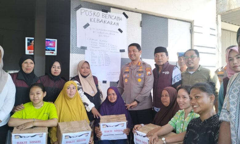 Makassar, 20 Agustus 2025 – Kapolrestabes Makassar, Kombes Pol. Arya Perdana, S.H., S.I.K., M.Si., melakukan kunjungan ke lokasi kebakaran di Jalan Sultan Abdullah Raya, Kelurahan Buloa, Kecamatan Tallo, Makassar, pada Rabu (20/8/2025). Kebakaran yang terjadi pada Senin (18/8/2025) lalu telah menghanguskan 8 rumah dan menimpa 11 Kepala Keluarga (KK) dengan total 40 jiwa yang terdampak musibah tersebut.